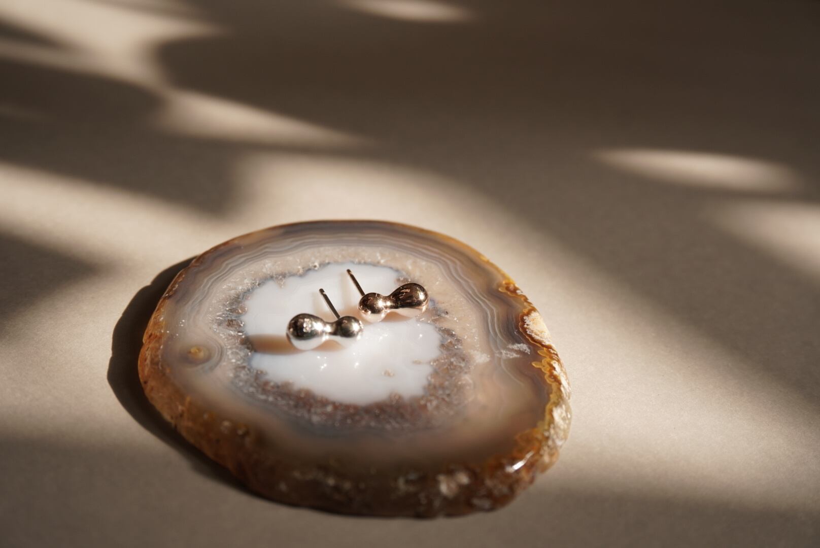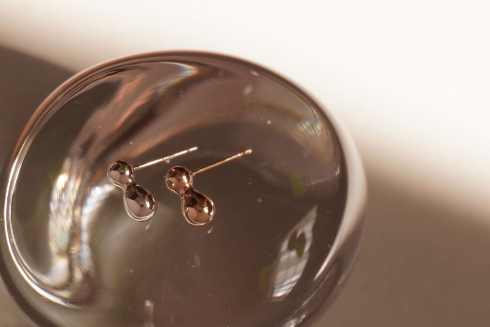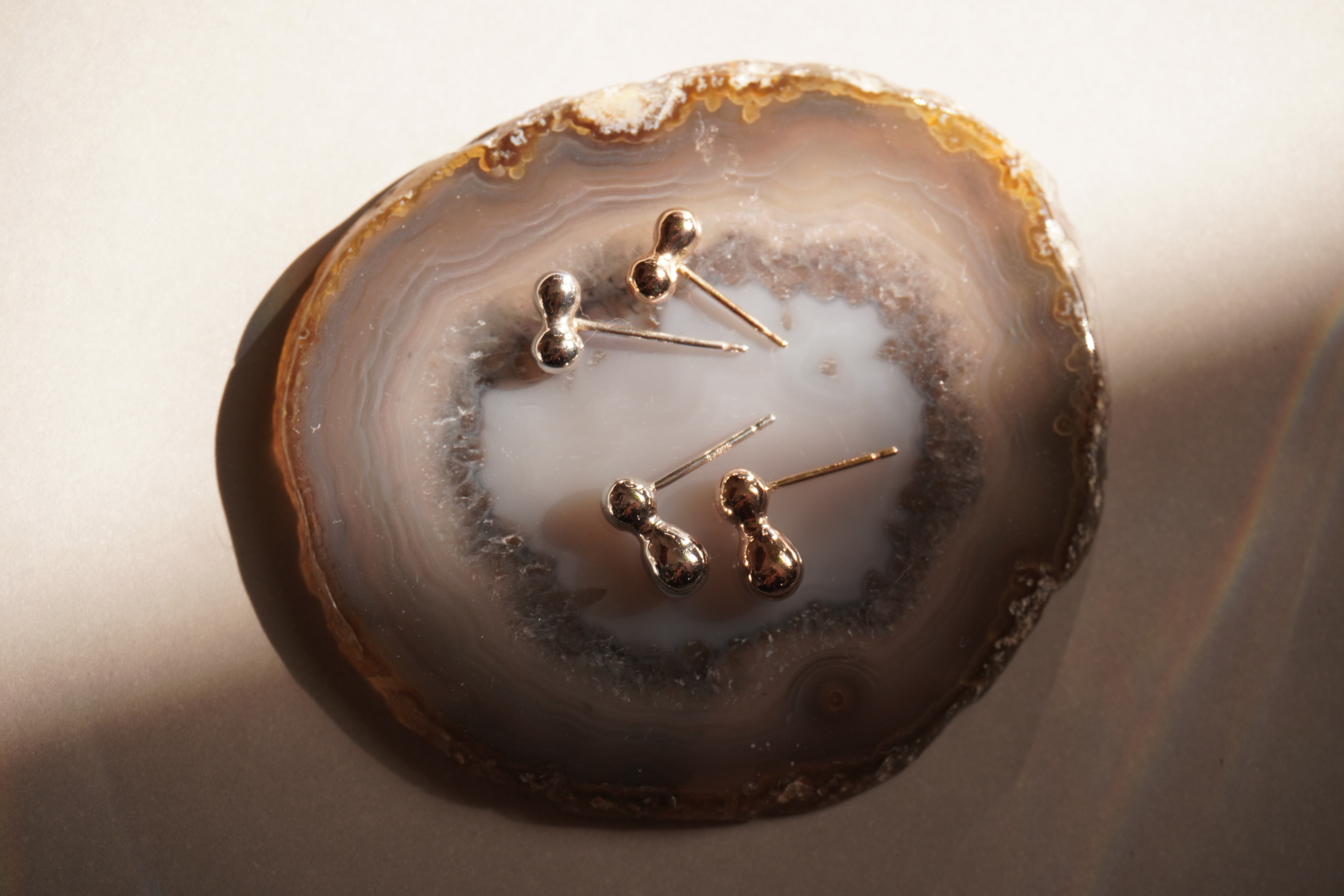 雨粒が重なった様をイメージした形のピアスは出来上がったらナッツのように見えたのでナッツと名付けました。