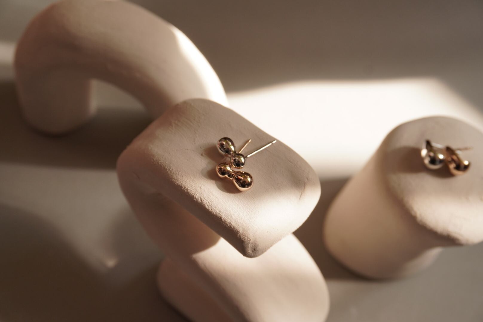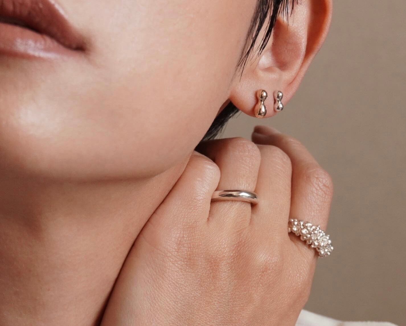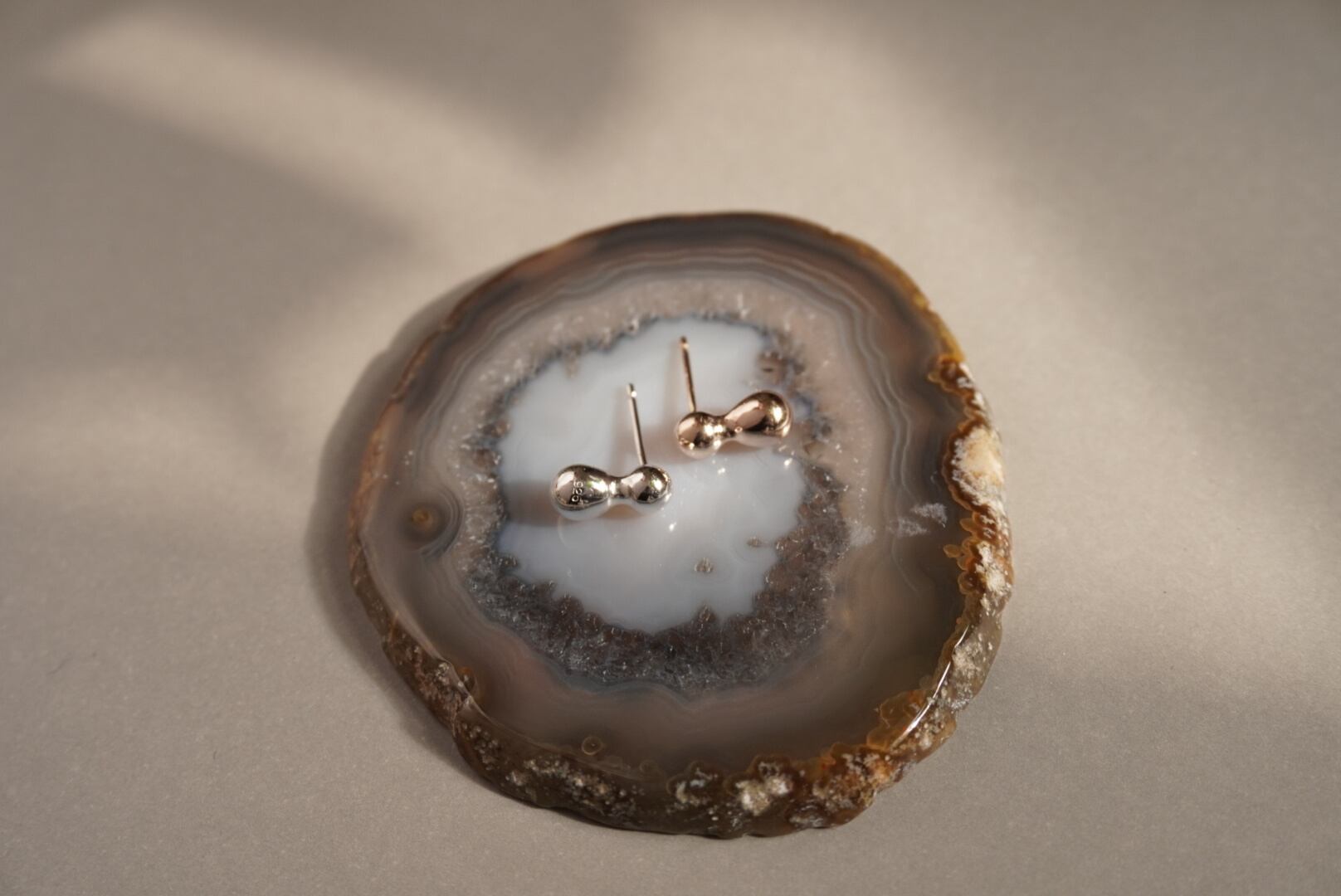 雨粒が重なった様をイメージした形のピアスは出来上がったらナッツのように見えたのでナッツと名付けました。