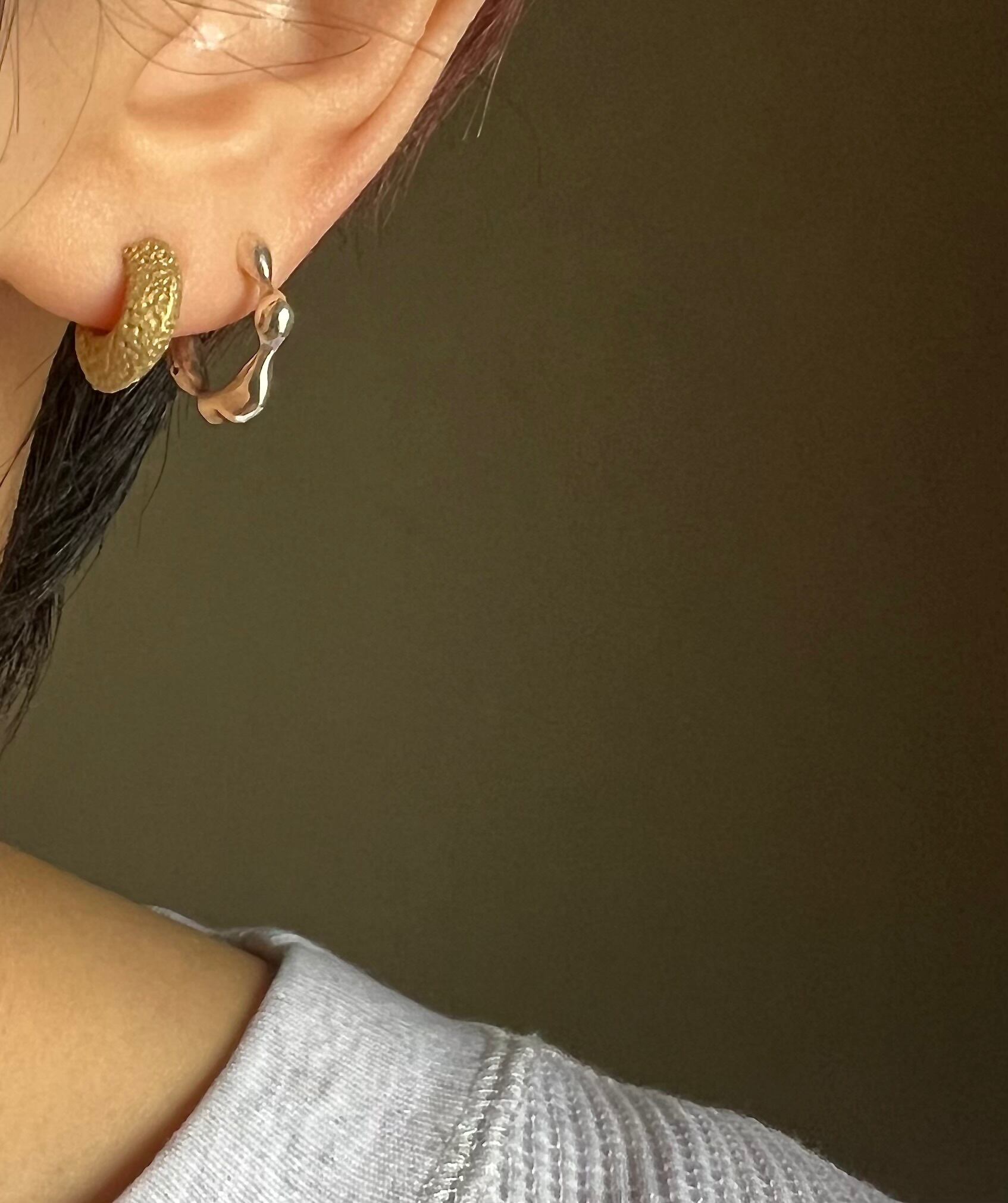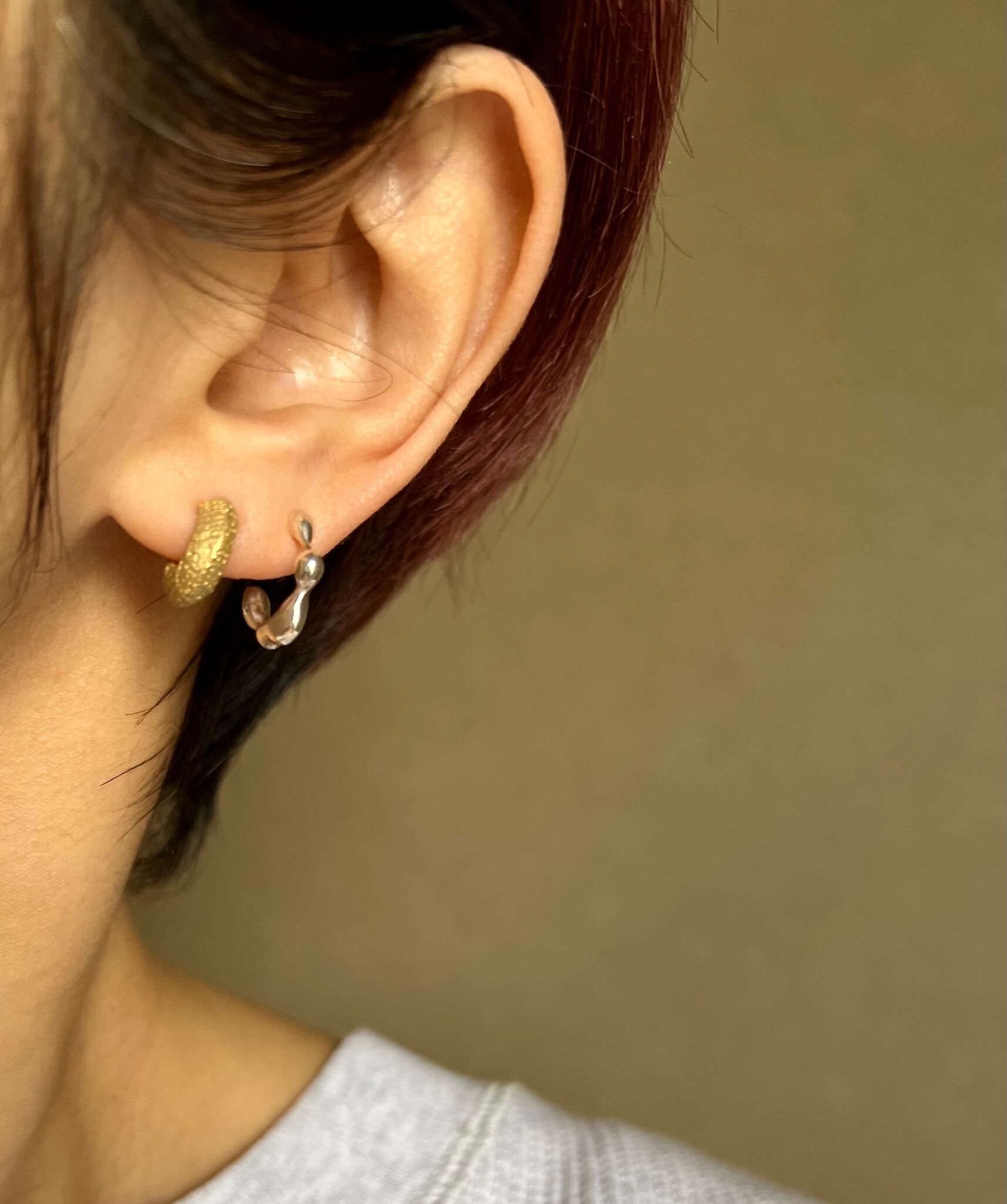 肌馴染みがいいマットタイプと耳元でさりげなく光ってくれるポリッシュ。